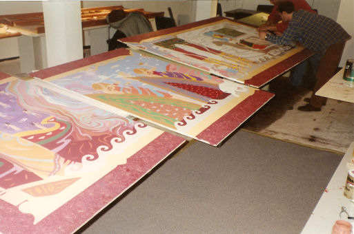 Mural. Acrylique sur bois contreplaqué, Support composé de 4 panneaux.160 x 490 cm.
