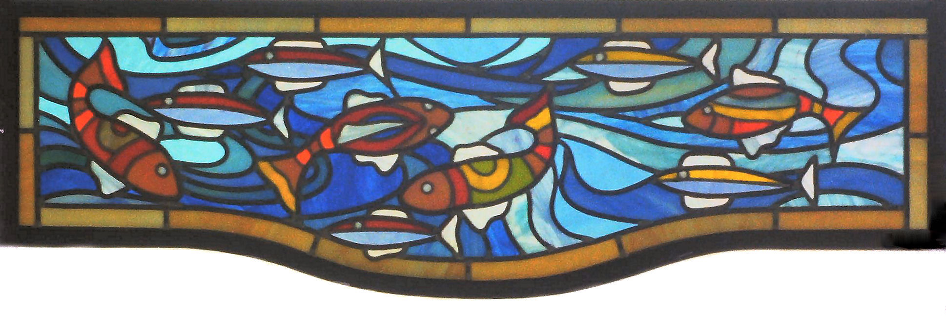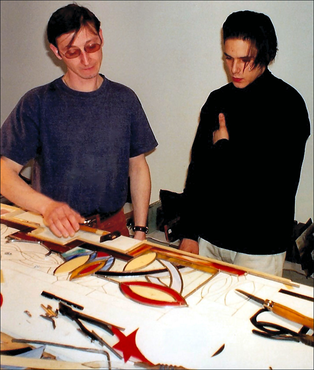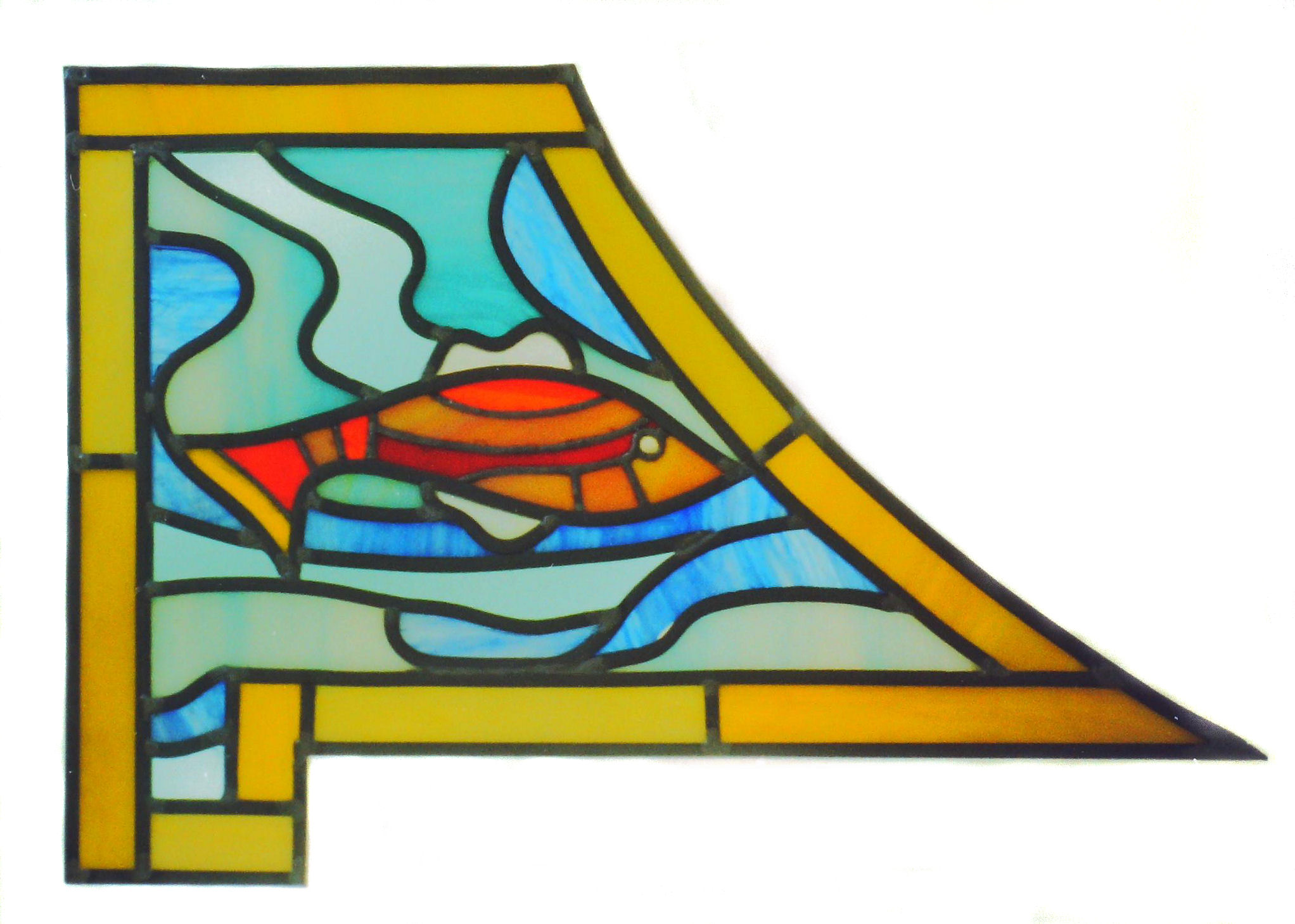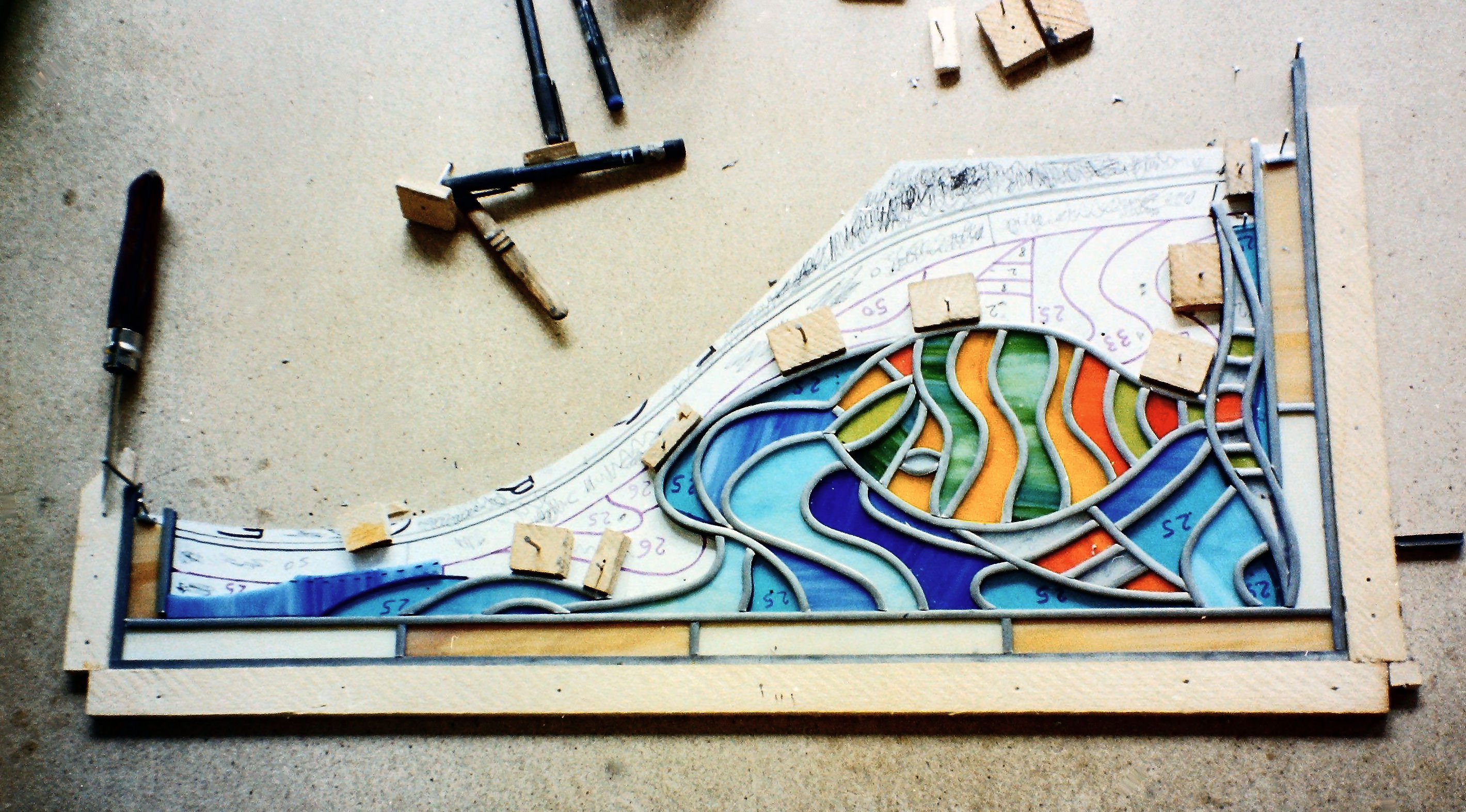 Gabarits, dessins et composition chromatique des vitraux, pour les vitraillistes Juan Carlos Borras Miralles et Primitivo Garcia Alonso. France et Floride. 1995-96