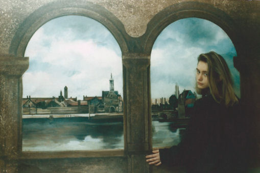 Trompe l’œil d’après la Vue de Delft de Johannes Vermeer. En cours vers 1987. (Photo Frédéric Merch)