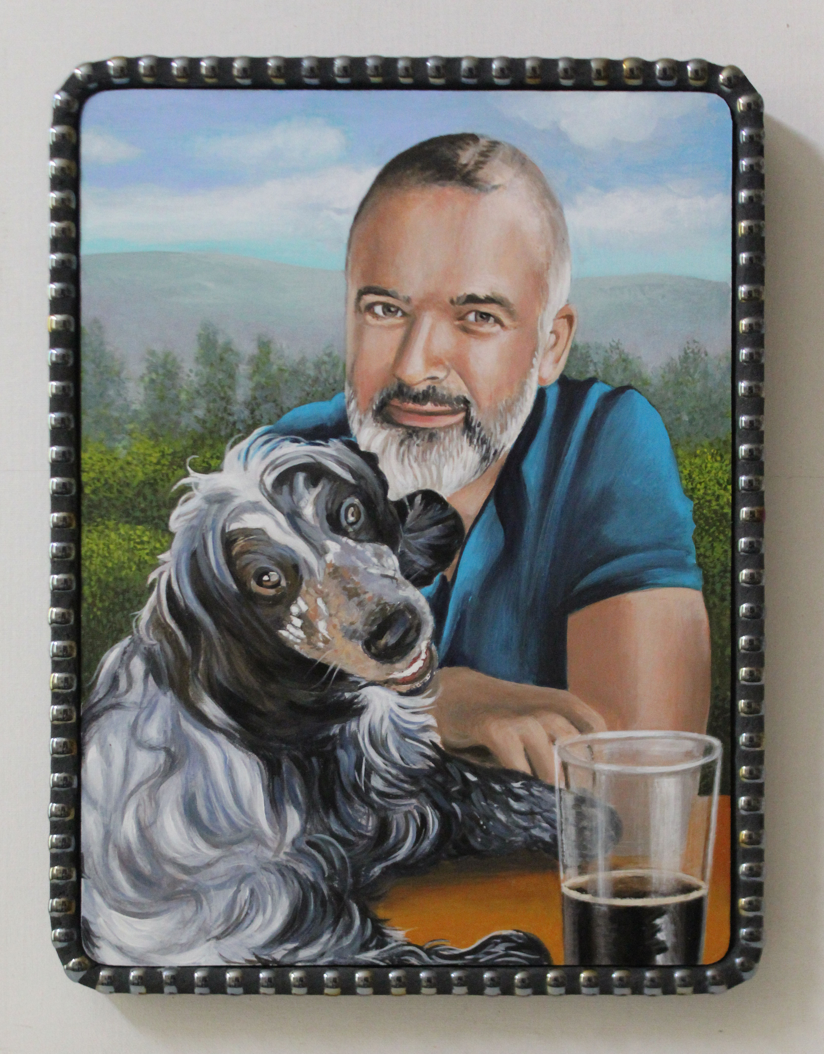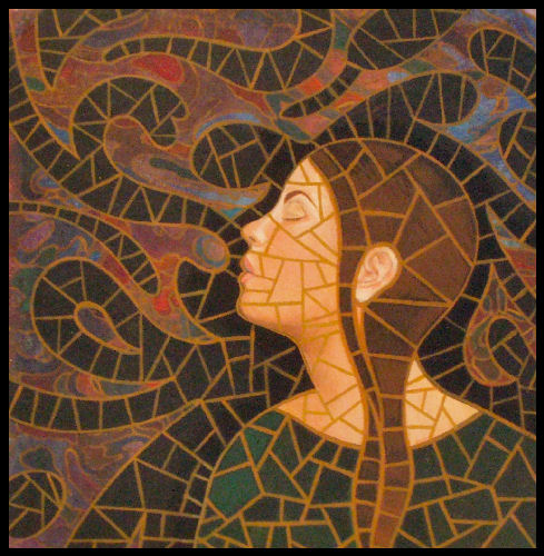 Portrait sur mosaïque Acrylique sur verre dépoli. 27 x 36 cm.